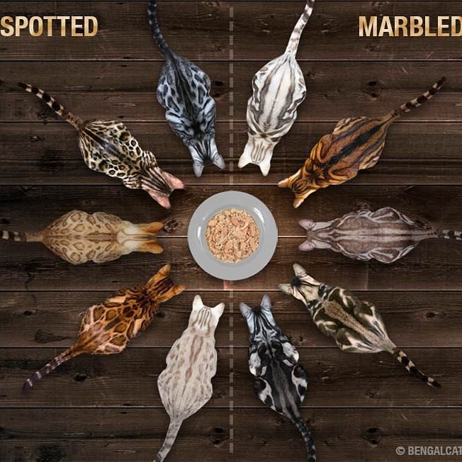 De acordo com o padrão, o gato Bengal deve ter uma aparência exótica e musculosa, com manchas escuras em um fundo mais claro. As manchas podem ser rosetas, que parecem um pouco com as manchas do leopardo, ou manchas circulares com um centro escuro.